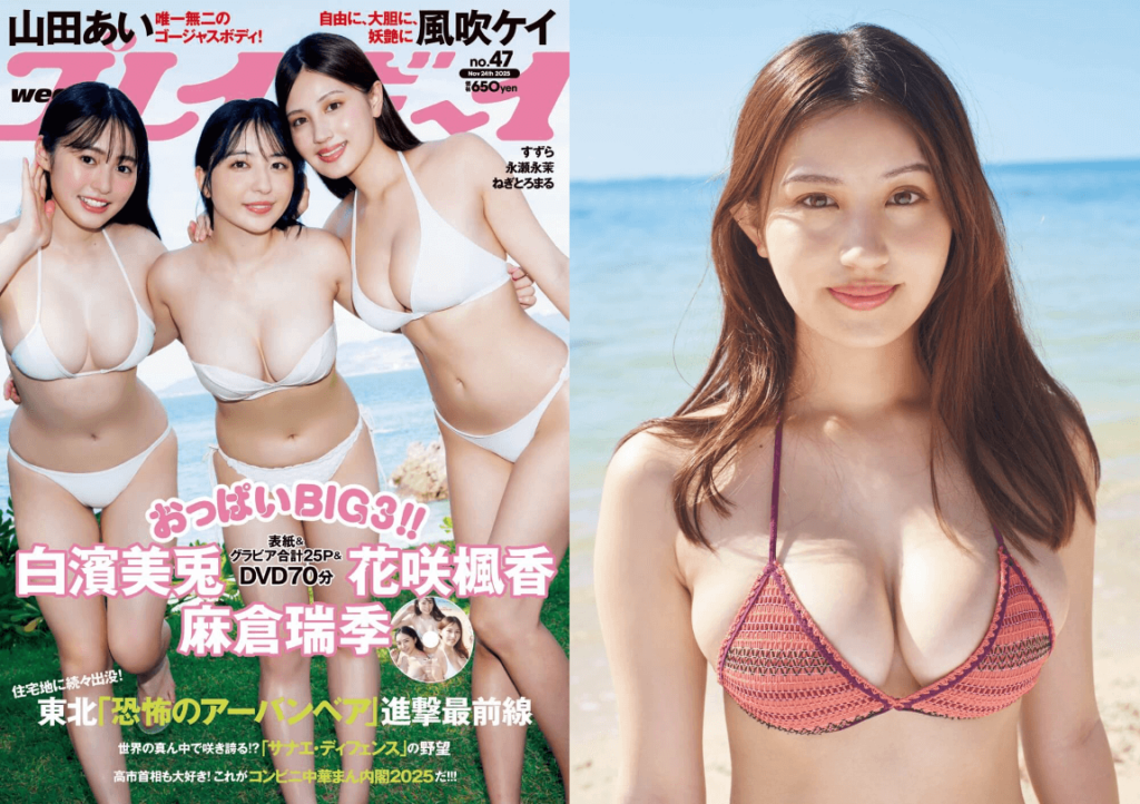11月10日に発売される『週刊プレイボーイ』47号は、花咲楓香・麻倉瑞季・白濱美兎の“おっぱいBIG3”が夢の共演!