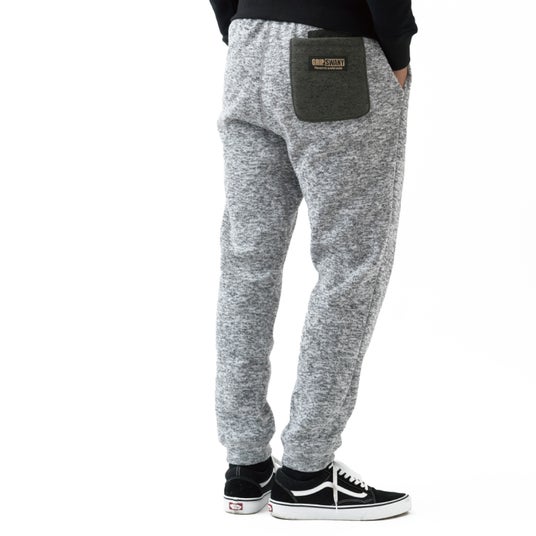 【KNIT FLEECE PANTS】やや細めシルエットの別注ニットフリースパンツ。従来モデルからポケットの位置を変更し、すっきりしたシルエットとなりました。化繊高密度生地のしっかり肉厚な素材を使用し、キャンプでも街でも活躍できる一着。