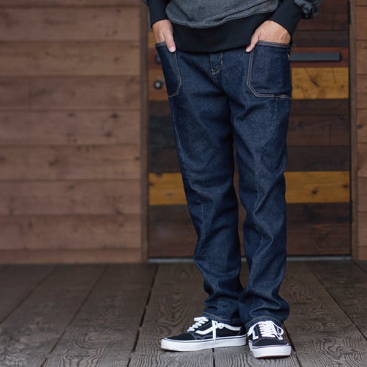 【WARM DENIM JOB 3D CAMP PANTS】人気商品「3Dキャンプパンツ」をベースに、冬でも暖かく保つことができるように、裏地に起毛加工を施した別注モデル。