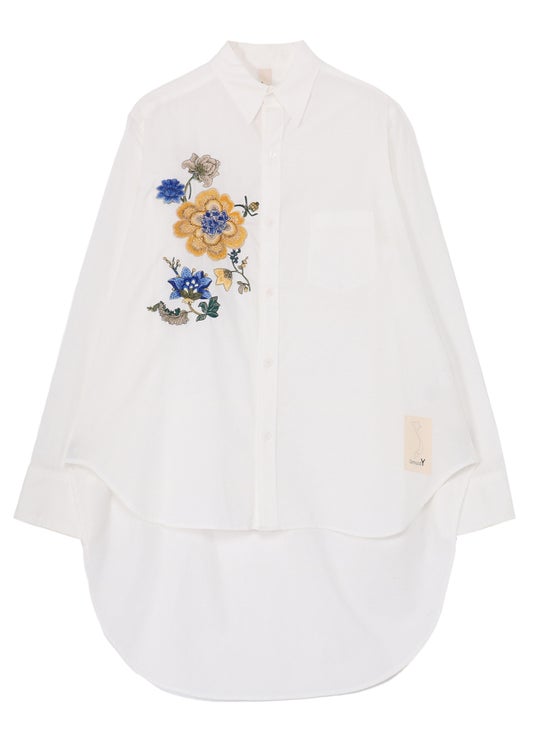 Ground Y 2025 Spring/Summer Collectionで発表された中華花をモチーフに、心斎橋PARCO限定のオリジナルカラーとデザインで仕上げたシャツは、エレガントさとモダンな雰囲気を併せ持つ一着です。スリムなシルエットと、後ろ身頃を長めに設計したデザインが、レイヤードスタイルを美しく引き立てます。軽やかな綿100%のツイル生地は程よい光沢感をまとい、上品で洗練された印象を演出。ホワイト、ブラックの2色展開で、シンプルながら存在感のあるアイテムとしてコーディネートに華を添えます。