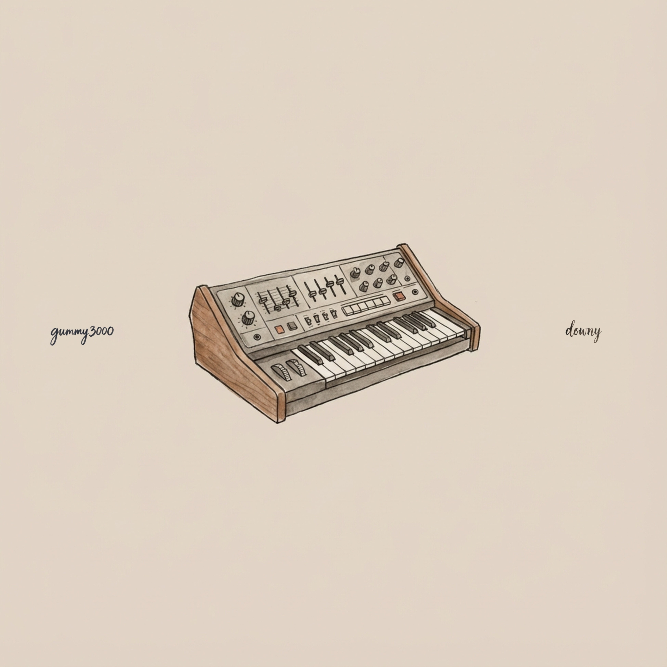 「downy」アートワーク 幼少期に描いた架空の風景を音楽に変えた作品が話題となり、配信から 1 年でサブスクリプション再生数 250 万回を突破し、海外のリスナーを中心に人気を集めるアーティスト、gummy3000が1月23日(金)に新作「downy」をリリースした。 やわらかな余韻が静かにほどけていく、温度のあるローファイビート。ベースに Shinsuke Iwamoto、ギター&ピアノアレンジに 山口竜生(一寸先闇バンド) を迎えた、これまでにない“バンド感”を宿した意欲作だ。