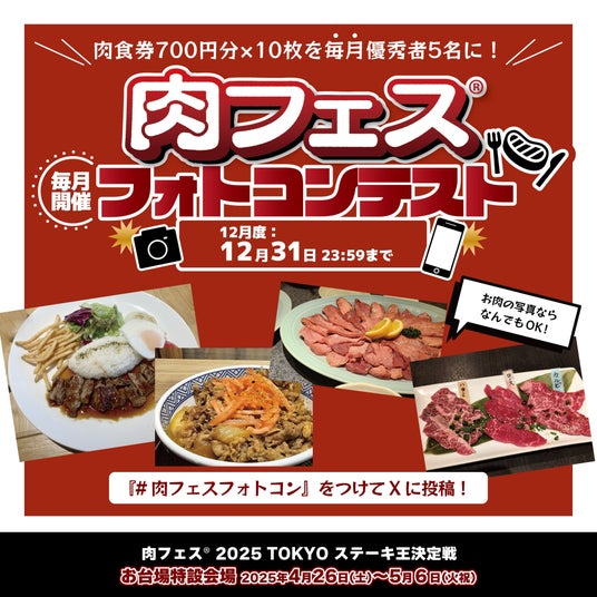 ・応募方法:Xで、『#肉フェスフォトコン』を付けて肉料理の写真を投稿