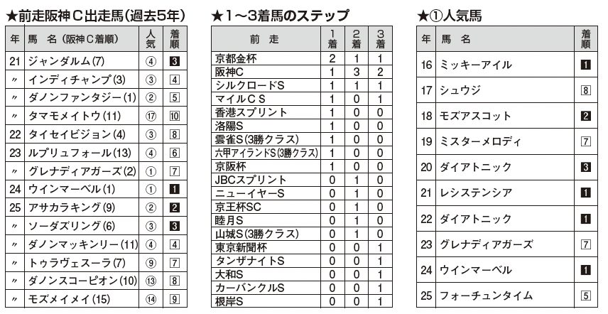 最も多く出走しているのが同舞台の阪神C組[1・3・2・22]。