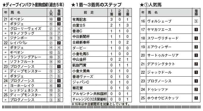 GⅠクラスがその年の初戦で使うことも多く、前年秋のGⅠ組が[3・2・1・16]と強く、中でも有馬記念組が[3・0・1・10]と主力を形成。
