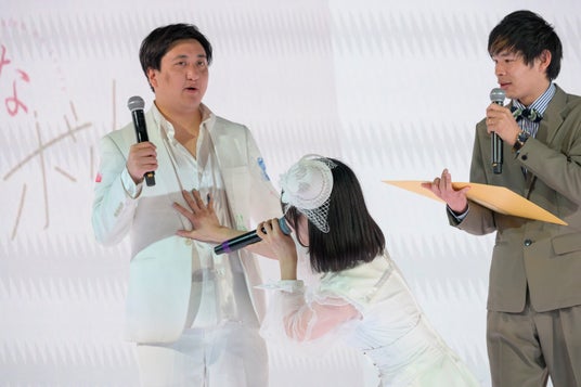 そして、メジャーデビューという新たな道を歩む可憐なアイボリーの旅路を歌った「少女たちとアイボリー」でミニライブを締めくくり、ここで特別ゲストのお笑いコンビ・カカロニ(栗谷・すがや)が登場。