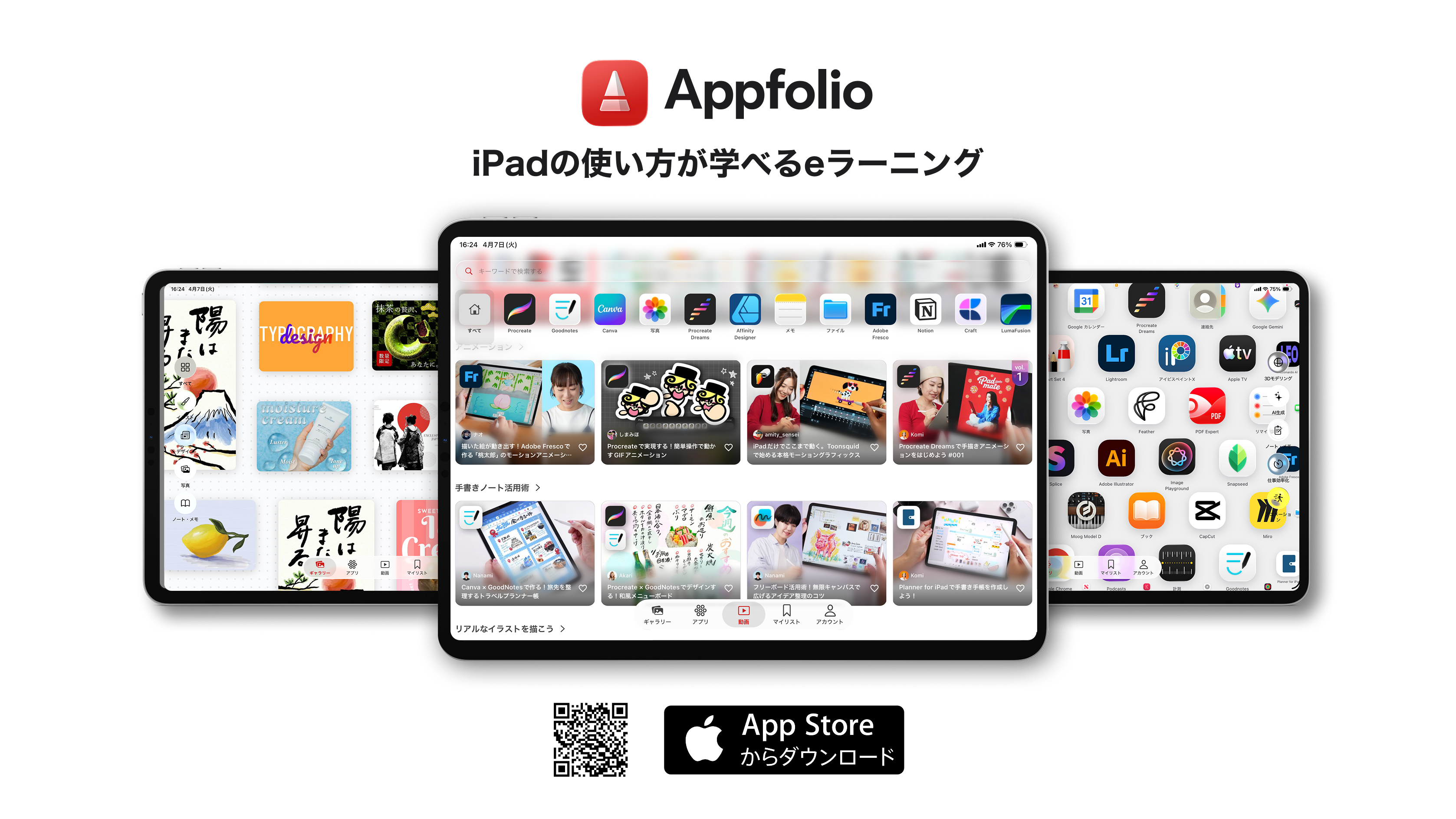 Appfolioは、iPadの使い方を動画で学べる月額制のサービスです。初めてiPadを手にした方から、もっとまで、幅広い方に使っていただけます。