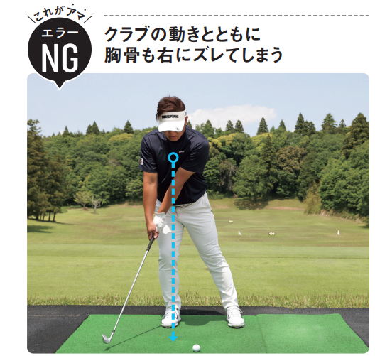 これがアマ!エラーNG:クラブの動きとともに胸骨も右にズレてしまう