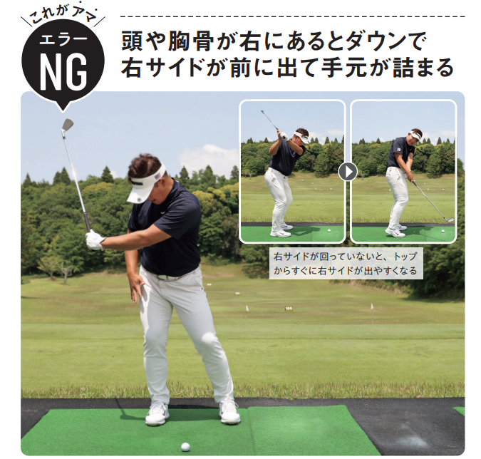 これがアマ!エラーNG:頭や胸骨が右にあるとダウンで右サイドが前に出て手元が詰まる