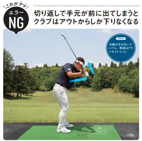 これがアマ!エラーNG:切り返しで手元が前に出てしまうとクラブはアウトからしか下りなくなる