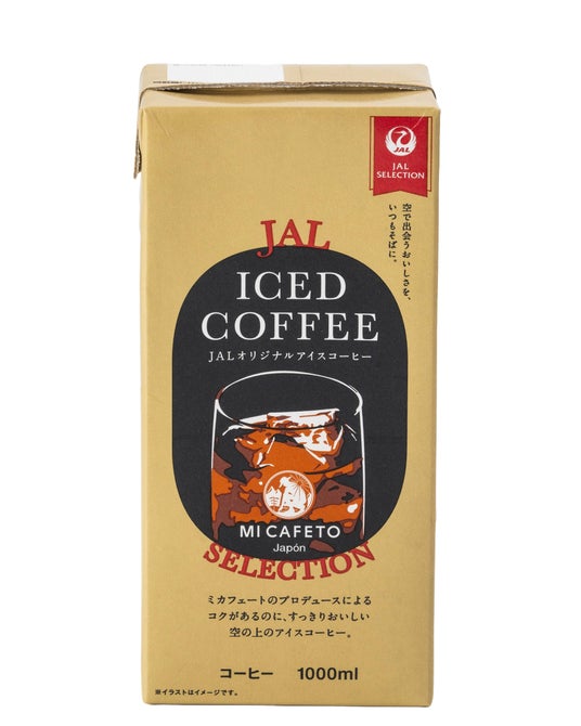 「JALオリジナルアイスコーヒー」は、JAL機内で提供されている特別なアイスコーヒーです。JALと共同開発したオリジナルブレンドは、ミカフェートの品質へのこだわりから生まれた、すっきりとした苦味と心地よい酸味のハーモニーをお楽しみいただけます。