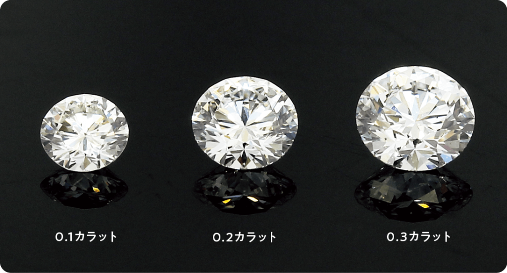 カラットは「大きさ」の単位ではなく、「重さ」の単位。重さが増えると当然大きくなるため、「カラット=大きさの単位」としてまちがわれやすいのです。