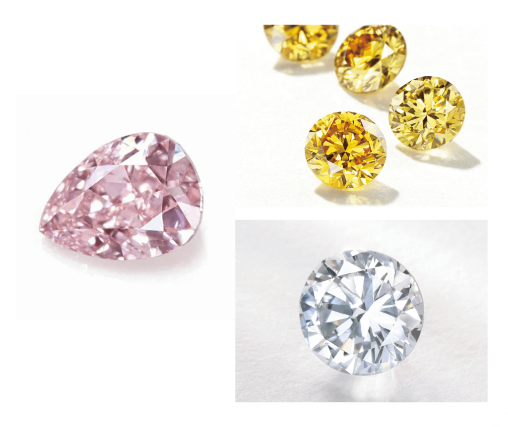 無色透明のイメージがあるダイヤモンドですが、じつはさまざまな色のものがあり、それらを「ファンシーカラー・ダイヤモンド」とよぶこともあります。蛍光や燐光が見られるダイヤモンドもあります。