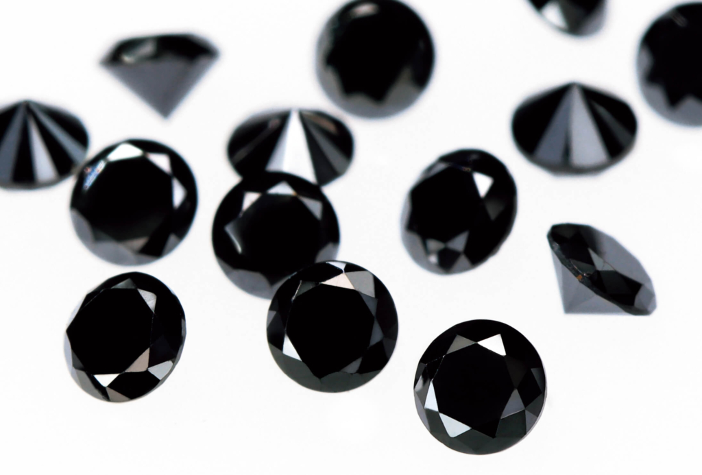 黒く光るブラックダイヤモンドとよばれるものもあります。黒色のグラファイトという炭素の結晶や、別の鉱物がインクルージョンとしてふくまれることで黒く見えます。
