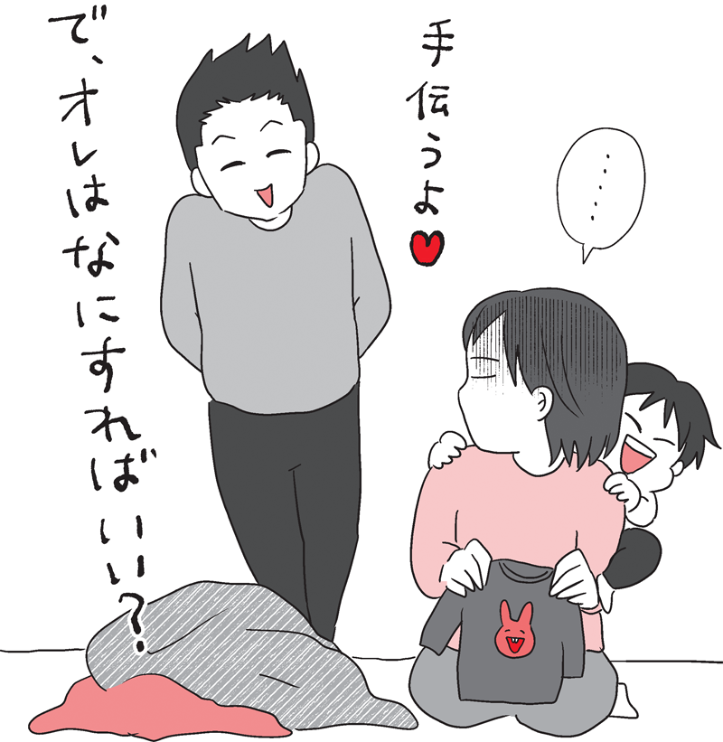 そもそも、「手伝う」という言葉を選択した時点で、夫側に「家事、育児のメインはあくまで妻」という潜在意識が働いているのを感じ取れます。本来は夫婦で行うべき子育てに対してどこか他人事のような立ち位置であることをほのめかしてしまったわけです。夫としては特に意識せず「手伝う」と言っていたとしても、その語感に主体性のなさが感じられるため妻のモヤモヤは残ってしまうでしょう。