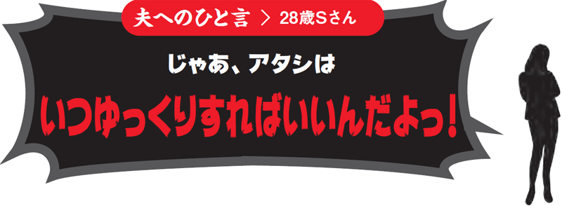 休日に妻から頼み事をされたときの定番ワード。「休みの日くらい仕事の疲れを癒したい」という気持ちはわかりますが、夫は会社を離れれば仕事から解放されるのに対し、妻はミルクやオムツ交換、お風呂など、特に乳幼児期の子育てには1日休むという考えは通用しません。