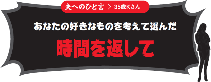妻の不在中に実家と連絡をとった夫が、妻に向かってしれっと発したひと言。夫が家庭や子どもの話などをした際に、実母から聞かれがちなのが「毎日、何食べてるの?」ですが、これは嫁の仕事ぶりを探る質問である可能性があります。ここはしっかり妻の顔を立ててあげるのが常道でしょう。とはいえ、それが誘導尋問であるなどと思いも及ばないのが夫という生き物でもあります。実際、多忙な日はスーパーの惣菜ですましてしまうことがあっても、それは毎日ではないはず。たまの手抜き料理に対して、わざわざ「毎日」をつけて話すところに、夫の無意識の悪意が感じられるわけで、スーパーの惣菜すら買ってきてくれなくなる日も近いかもしれません。