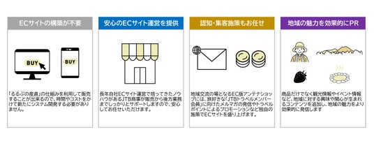 地域の特産品取扱事業者の人手不足による新たな集客・認知拡大、収益確保への対応が難しいなどの課題解決を目的に、株式会社JTBパブリッシングと連携し「るるぶの産直」を通じて、DMOや地方自治体、観光協会等の地域ユニットとの関係構築を図りながら、単なる物販にとどまらない地域の魅力を伝えながら、地域経済の活性化と、お客様への新たな価値提供を目指してまいります。