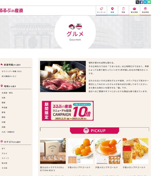 JTBグループ(JTB商事)が運営するEC版アンテナショップ「るるぶの産直」(JTBショッピング内)2025 年 2 月 21 日(金)にリニューアルオープン