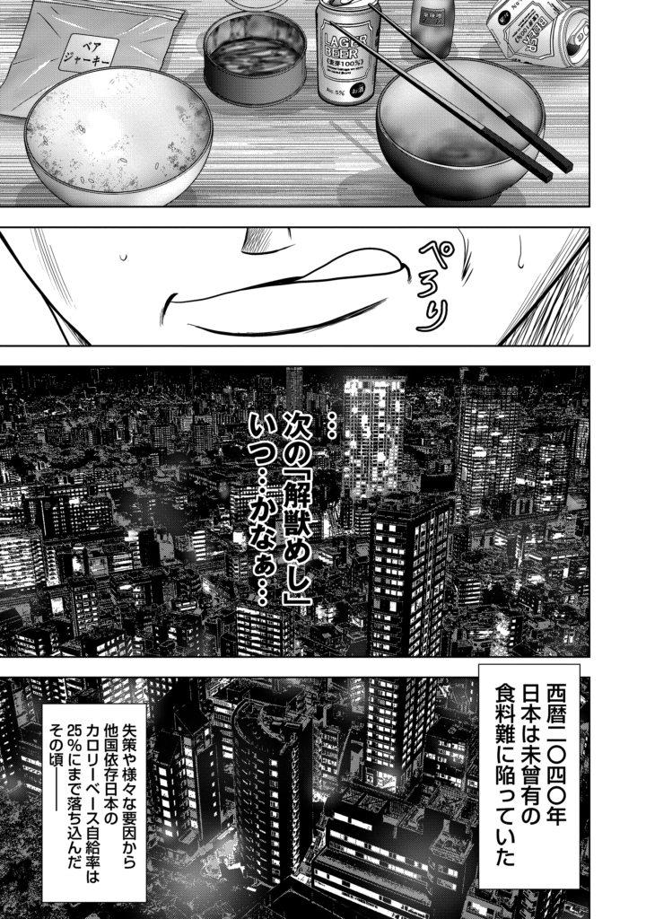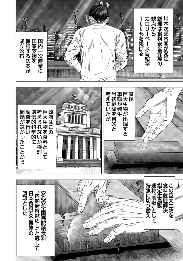 【怪獣めし/第1話】食料自給率25%の日本を救うのは「巨大怪獣の肉」!? 話題の超リアルサバイバル漫画