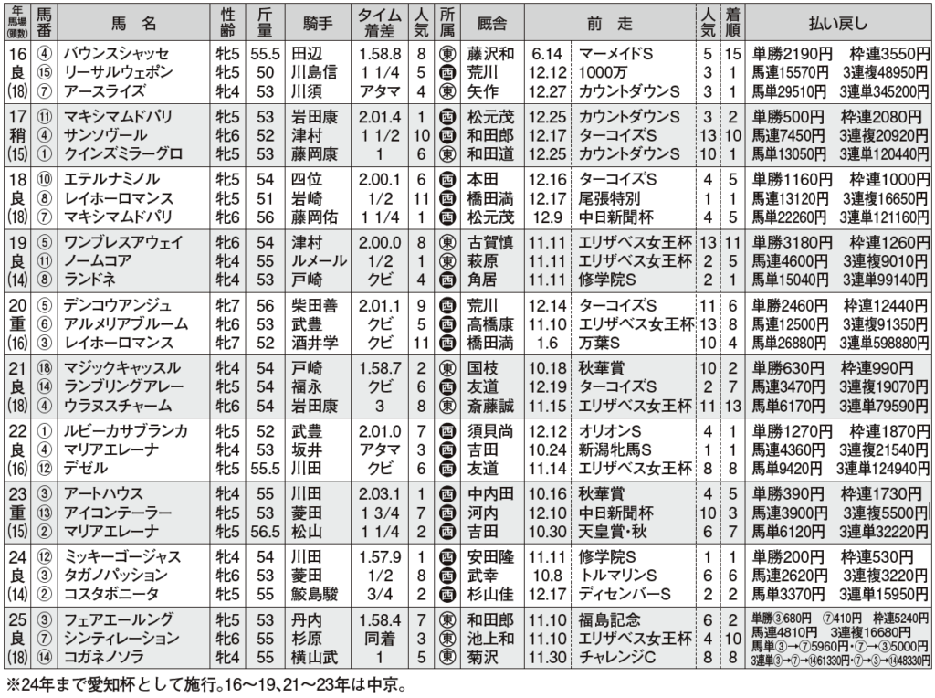 ※24年まで愛知杯として施行。16~19、21~23年は中京。