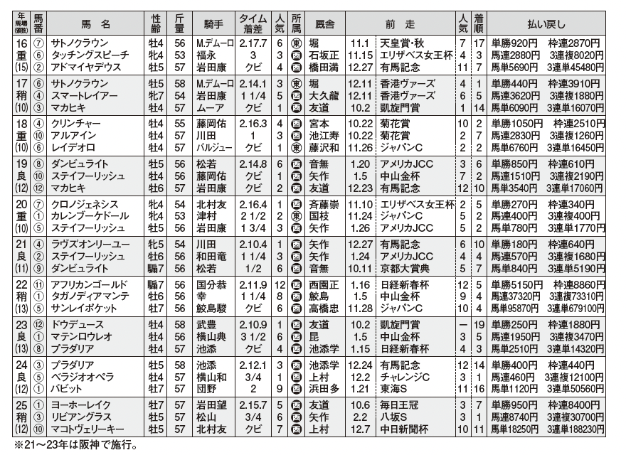 京都記念 過去10年のデータ