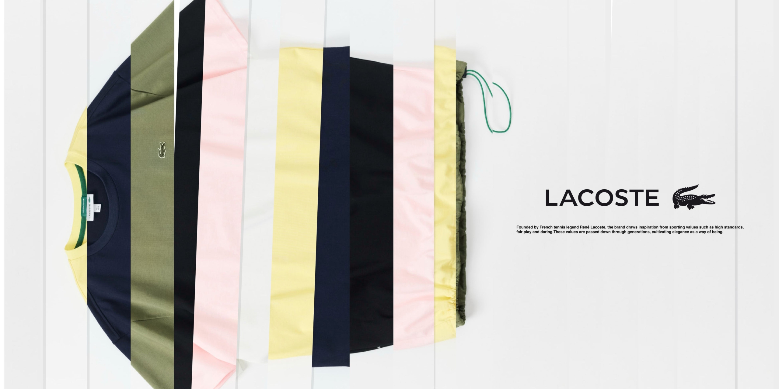 ルネ・ラコステ時代のテニスウェアは白のシャツにパンツと言う格好で、運動に適している服装ではなかった。そこで彼は半袖で襟がリブニットボーダーの軽く伸縮性に優れたニットシャツを開発する。これが現在もラコステの看板商品であるポロシャツの原点である。25歳で引退した後、4年後にはテニスシャツのデザインをはじめることになり、ラコステ創業へとつながっていく。