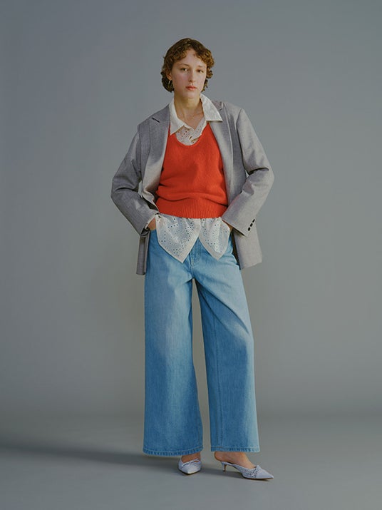 程よくハイウエストな股上と、細すぎず、太すぎないまっすぐと落ちるストレートラインが特徴。トップスやトレンドにとらわれず、デイリー使いにぴったりなきれいめシルエット。