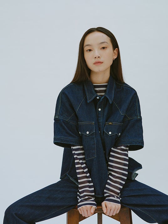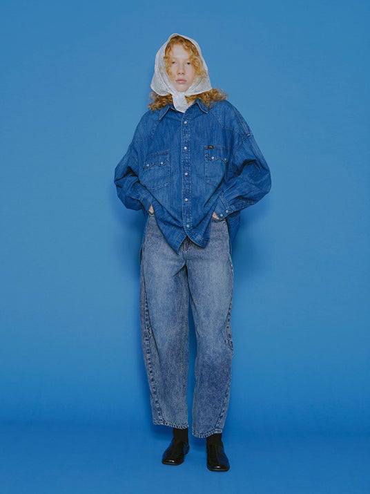 Lee(R)101をベースにKBFらしくサイズ感にこだわり、メンズライクなオーバーサイズに。前後差をつけて少し抜け感を出し、袖をロールアップしたり腰巻きにしたりスタイリングアレンジが楽しめる長袖タイプ。