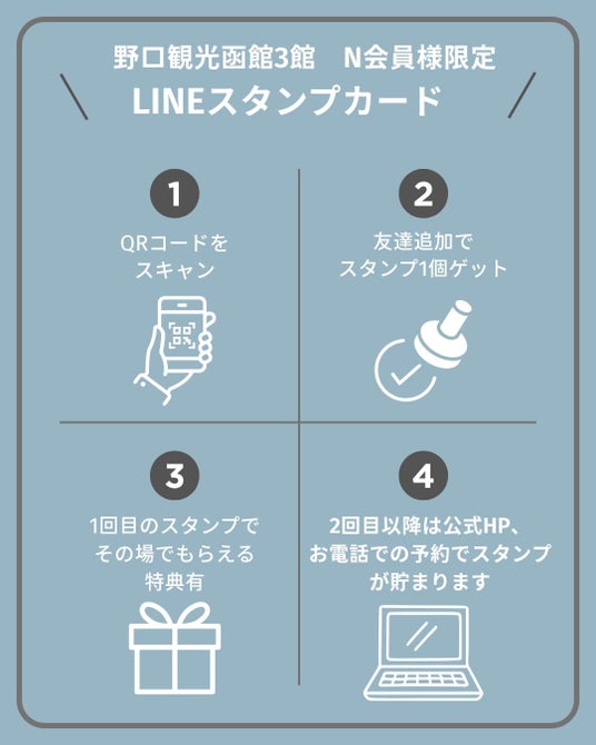野口観光グループの湯元 啄木亭、HAKODATE海峡の風、望楼NOGUCHI函館にて、社内プロジェクト「もっと満足プロジェクト」発案の元、野口観光グループ初となるLINEスタンプカードが始まりました