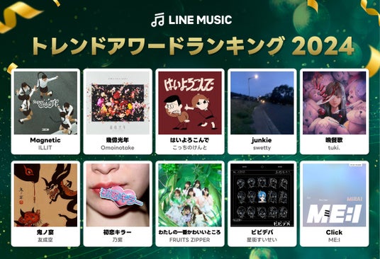 LINE MUSIC株式会社は、当社が運営する音楽ストリーミングサービス「LINE MUSIC」(iPhone・Android対応)において、2024年に最も再生された楽曲・アーティストをランキング形式で発表する「LINE MUSIC年間ランキング2024」のほか、2024年にランキングが上昇した・話題を集めた注目の楽曲10曲を選出する「トレンドアワード」を公開しました。