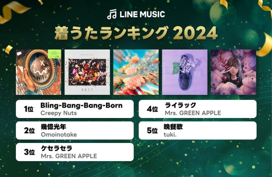 LINE MUSIC年間ランキング2024を発表!最も再生された楽曲はCreepy Nuts「Bling-Bang-Bang-Born」、最も再生されたアーティストはMrs. GREEN APPLE