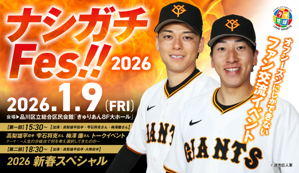 2026年1月9日(金)【巨人】高梨雄平投手&大勢投手が出演するトークイベント『ナシガチFes!! 2026』今回は《第一部》と《第二部》の二部制で開催!!