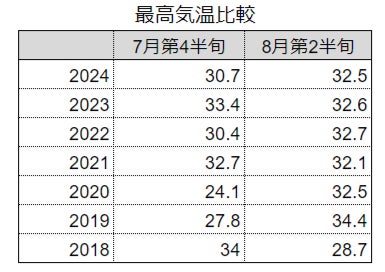 気温に関しては、会場となる国営ひたち海浜公園最寄りの観測点である水戸で7月の海の日付近と8月の山の日付近の定点観測をすると、過去7年間の最高気温においては海の日付近の方が高い年が3回あり、気温差はそれほど大きくありません。