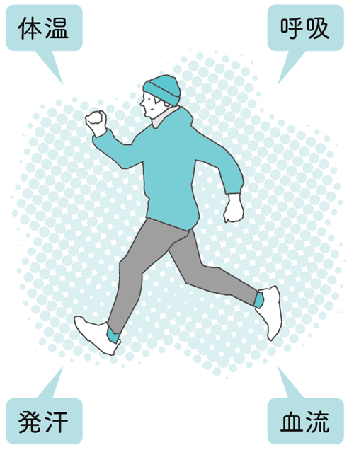 運動や緊張、興奮などによって高まる。心拍数、血圧、体温などを上昇させ、体を活動的にする。