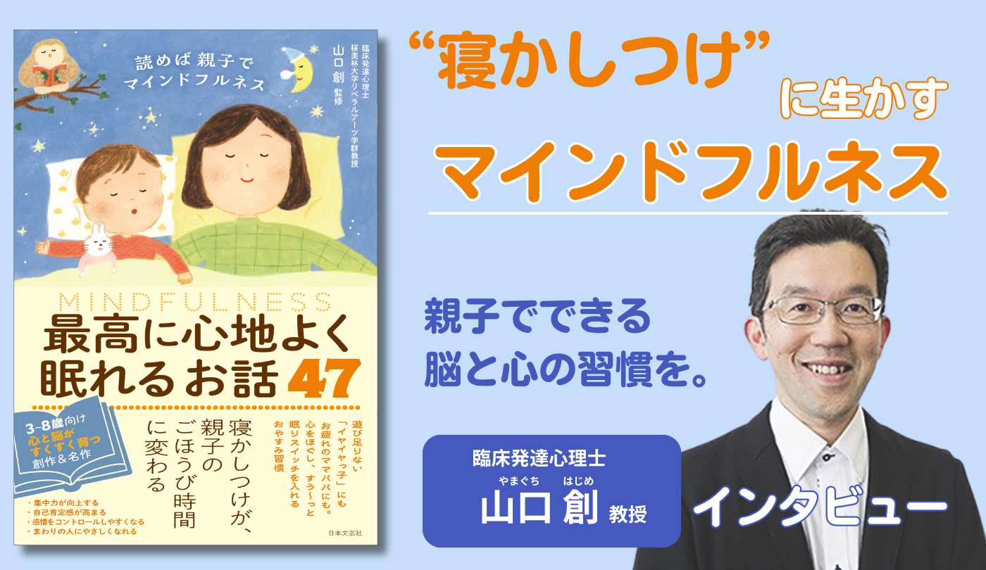 「毎日忙しくて、子どもとちゃんと向き合えない」「キツく叱ってしまって、今日も自己嫌悪」……そんな余裕がないお父さんお母さんにこそ知ってほしいのが『読めば親子でマインドフルネス 最高に心地よく眠れるお話47』。寝る前のほんのわずかな時間を本書と過ごすことで、パパやママの心が、子どもの行動が変わり、幸せな時間が生まれる! 監修を手がけた臨床発達心理士・山口創先生に話を伺いました。(全3回連載のうち1回目)