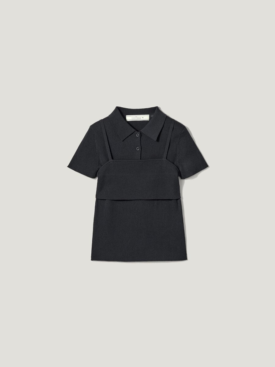 2ピースリブニットポロシャツ(半袖)by rokh