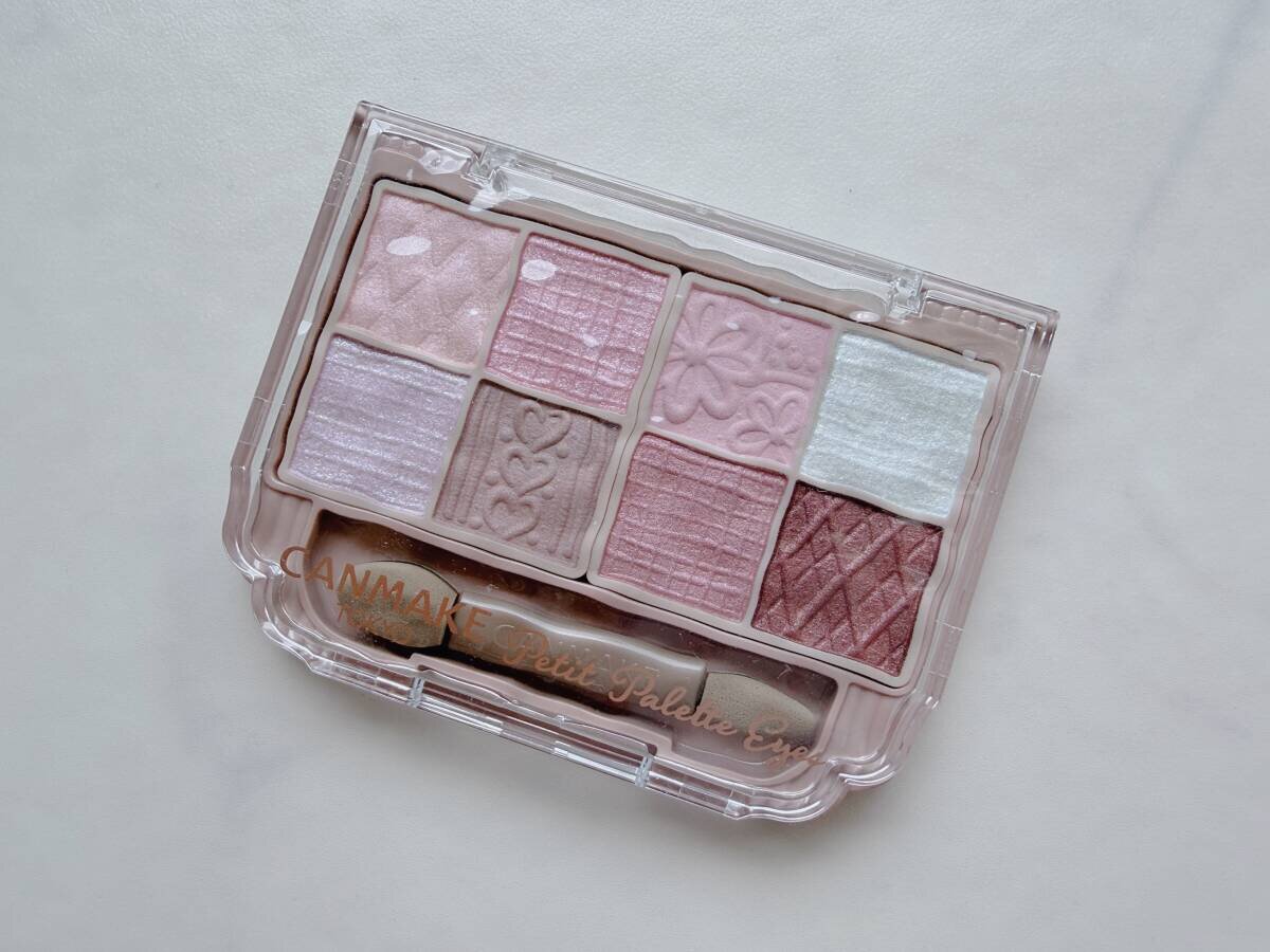 マットの白みピンク、くすみピンクや青ラメなど、トレンドの8色が入ったアイシャドウパレット。締め色のピンクブラウンでアイラインも描けて、涙袋メイクまでこのパレットで完成するので愛用しています!