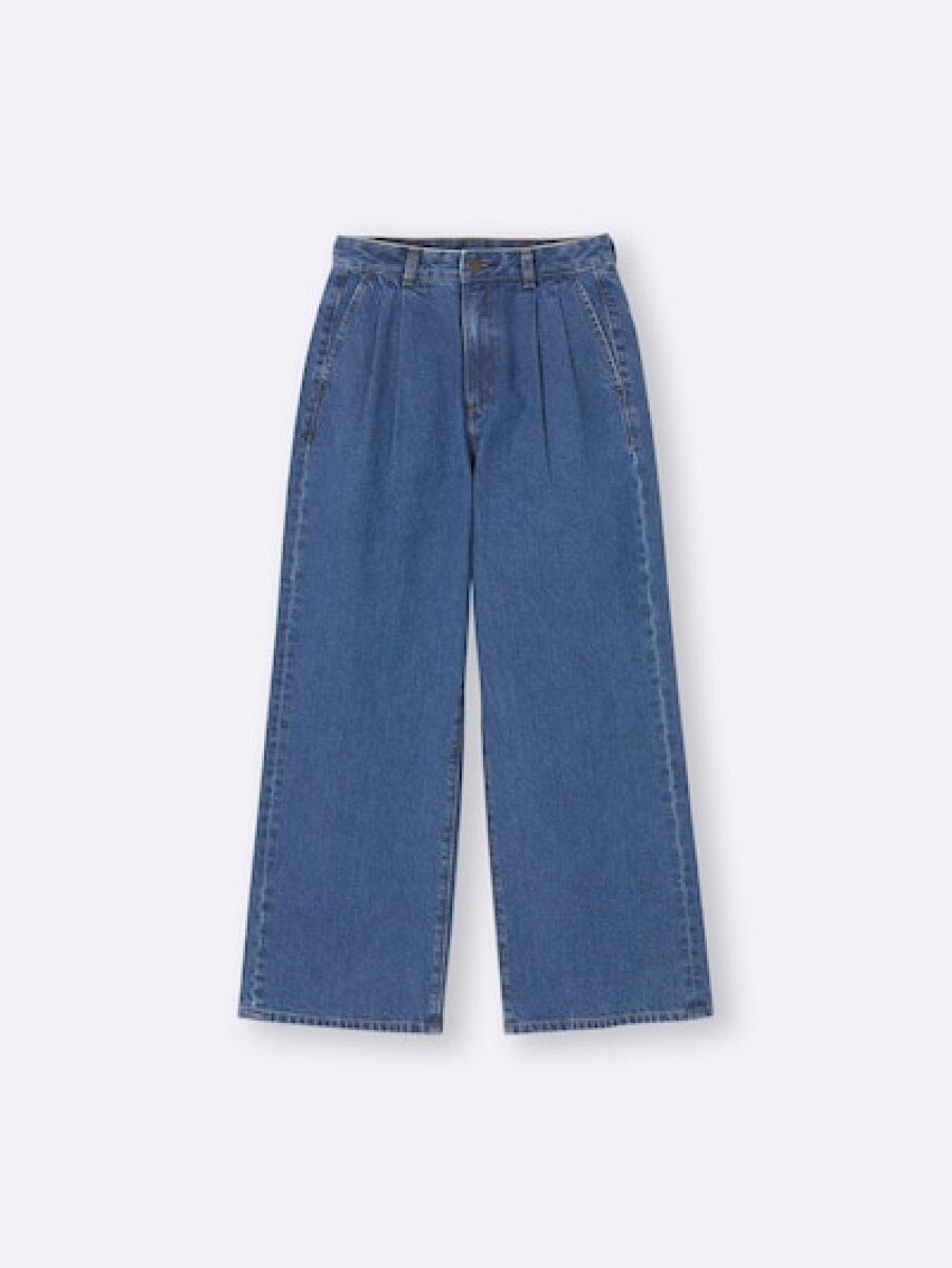 デニム素材を使用しながら、スラックスのような上品さも感じられるタックトラウザー。ワイドストレートのシルエットで抜け感があり、ハイライズ仕様でスタイルアップ効果も期待できます。フロントの2タックが腰まわりをすっきり見せ、きれいなラインをキープしてくれます。
