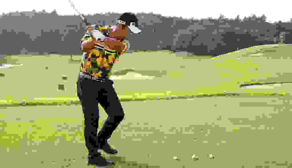 理屈はともかくとして、クラブヘッドを軸回転させてフェースターンさせることはとても重要ですし、プロがターフを飛ばすのはしっかりフェースターンしているからです。ですから、グリップなどもフェースターンしやすいように握ることが必要ですし、練習では動作が身につくまで意識的にシャフトを回してください。