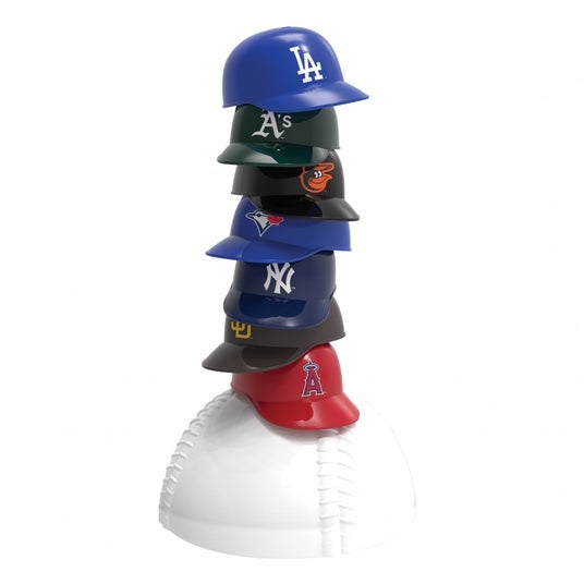 ◆MLBヘルメットバランスタワーMLBチームのロゴが描かれたミニヘルメットを崩さないように高く積み上げていくバランスゲーム。積み上げるためのヘルメットは30個付属していて、MLB全30チームのロゴが各1個ずつデザインされています。