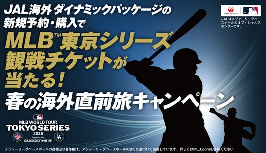 株式会社ジャルパック(本社:東京都品川区、代表取締役社長:平井 登、 以下「ジャルパック」)は、春までのJAL海外ダイナミックパッケージをご予約・購入いただいた方を対象に、抽選でメジャーリーグベースボール(以下、「MLB」)東京シリーズ指定席Sの観戦チケットが当たる「春の海外直前旅キャンペーン」を実施します。開幕戦2試合、プレシーズンゲーム4試合のチケットが各試合5組10名様ずつ、合計30組60名様に当たります。春休みのご旅行など、ぜひこの機会に海外旅行へお出かけください。