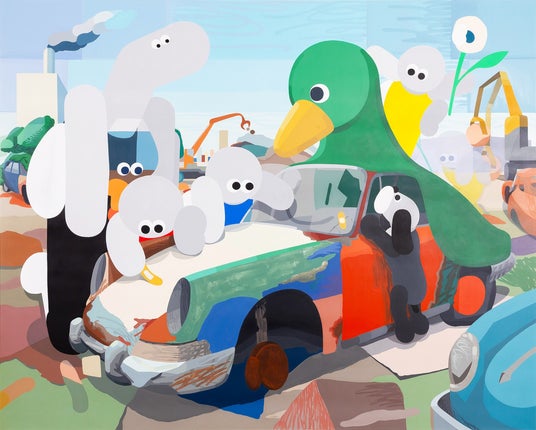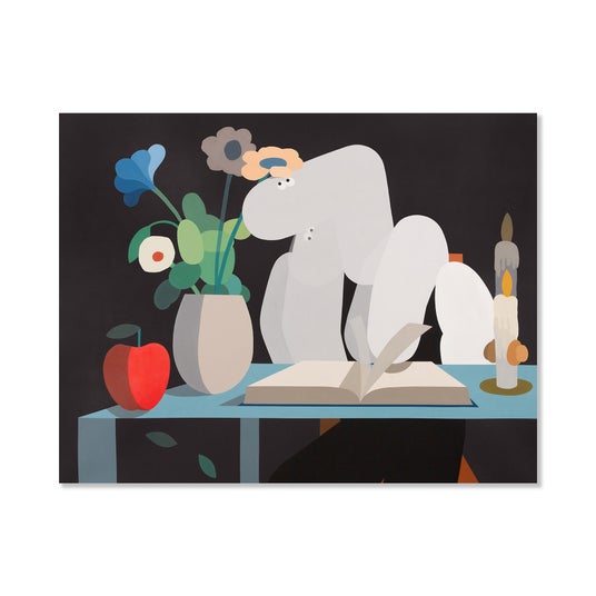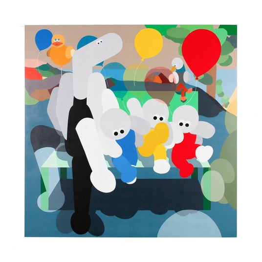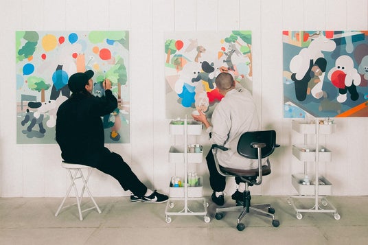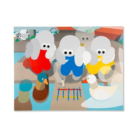 キャンバス作品に注力するようになった2020年頃から現在に至るまでも、常に新しい表現方法を模索・発表し続けています。ユニットである二人がそれぞれ構図と色彩感覚を通して行う独自の対話から生み出す作品は、不思議な温かさと共に人々の普遍的な感情をキャンバスに落とし込んでいるようです。