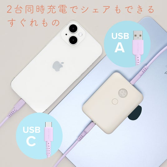 また、USB CポートとUSB Aポートを搭載しており、2台同時に充電することができます。