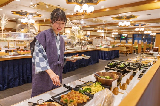 ご夕食は、「信州うまいもんビュッフェ」として、12月~3月の期間は冬メニューをご用意。信州サーモン・大王イワナなどの握り寿司5種や、信州牛ローストビーフの他、山賊焼きや馬刺し、信州味噌の味噌汁、野沢菜漬けなど、信州の郷土料理もずらりと並びます。