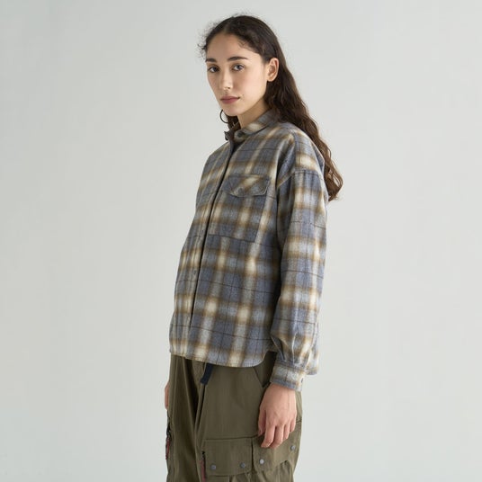 ゆったりとした身幅が特徴のウィメンズのキャンプシャツ。裾や襟、ポケットのデザインはラウンドがかっていて、着用した際にやさしい印象を与えます。ワンウォッシュ加工されたコットンフランネル生地は肌触りも良く、3シーズンにわたって着用できます。