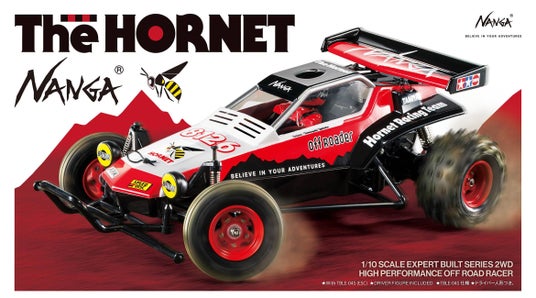 今回のコラボレーションは、 TAMIYAのロングセラーであり根強い人気を誇る電動ラジオコントロールバギー「ホーネット」をNANGAのブランドカラーに染め上げたエクスクルーシブ仕様。