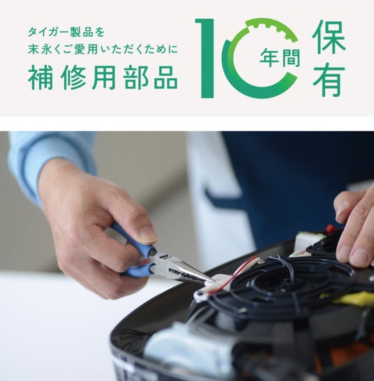 ■補修用性能部品の10年間保有 当社では愛着ある家電を長くお使いいただくために、製品の機能を維持するために必要な部品である補修用性能部品について、業界水準より長く、製造が終わってから10年間保有をしております。生産終了後、年数が経過したときに補修用部品の在庫がないために修理ができず、「お気に入りなのに、手放さないといけない」という残念そうなお客様の声を一つでも減らしたいという想いから始まった取り組みです。「買い替え」だけでなく「修理」や「部品交換」といった選択肢を広げることで、お客様のご期待に応えたいと考えています。