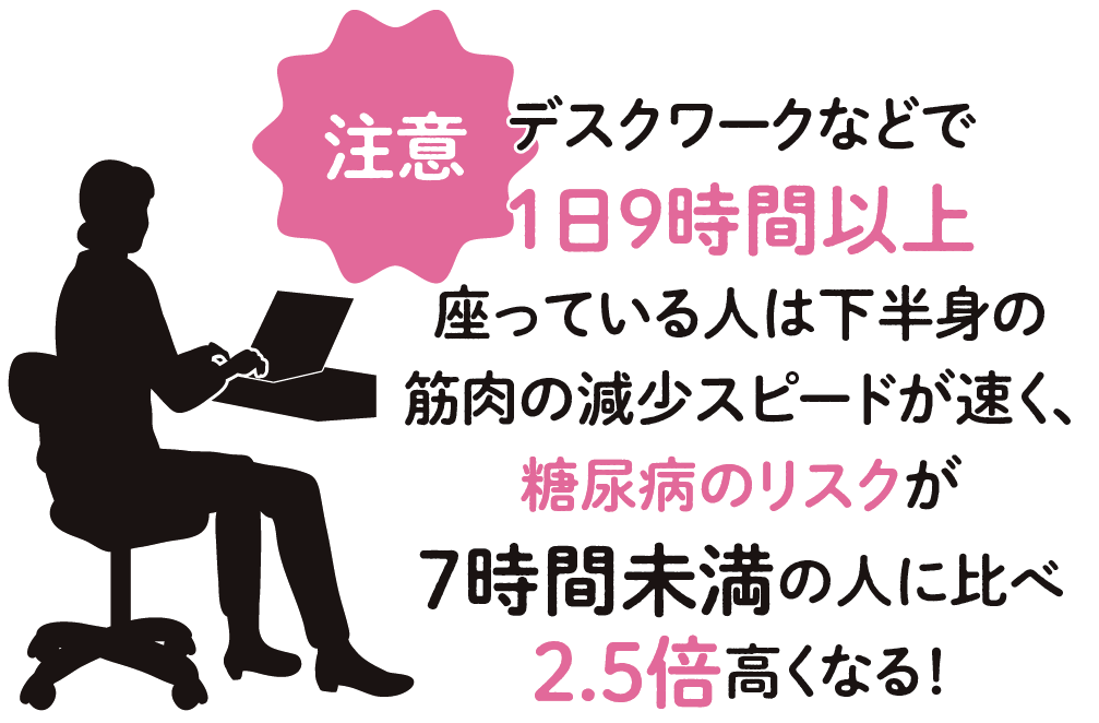 特に女性は注意が必要です。筋肉の合成には、男性ホルモンである「テストステロン」が大きく関わっています。そのため、一般的に女性は男性に比べ筋肉量が少なく、体脂肪が多め。したがって、基礎代謝も男性より低いと考えられています。いずれにしても、年齢を重ねれば重ねるほど、意識的に筋肉を増やす必要があるのです。