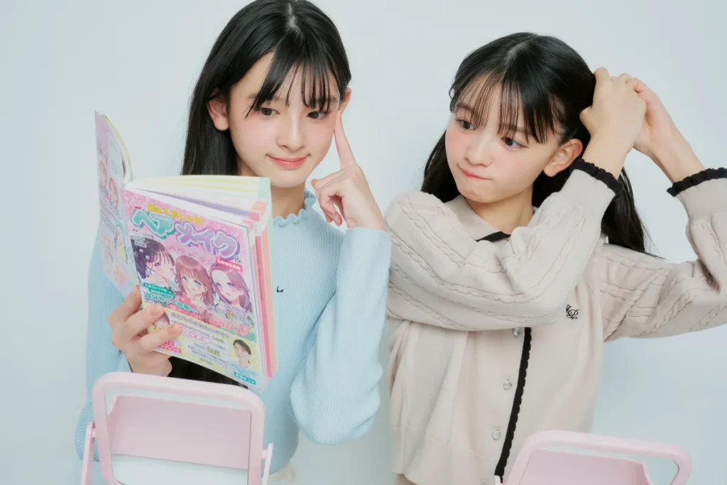 ヒナちゃんとホノカも『No.1おしゃれ ヘアメイク&スキンケアLesson』を読みながら、ヘアアレにちょうせん! 1人でわからないところは、教えっこするのもアリ★