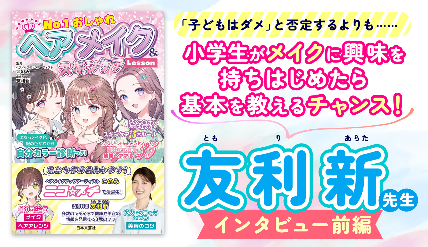 メイクを楽しむには皮膚の健康状態を守ることが第一条件だという友利先生に、小学生のためのスキンケアについてお話を伺いました。前編、後編の全2回の公開です。